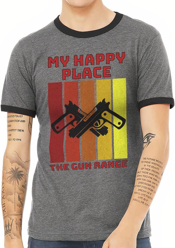 My Happy Place The Gun Range Ringer T Shirt Pistol T Shirt Retro Ringer Tee Deep Heather Black S Amazon Com