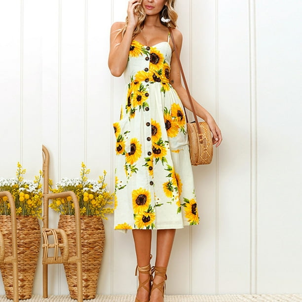 Women Summer Dress Button Dress Comfortable Fashionable Breathable Washable With Pockets For Beach For Summer For Dating Yellow Sunflower L Walmart Ca
