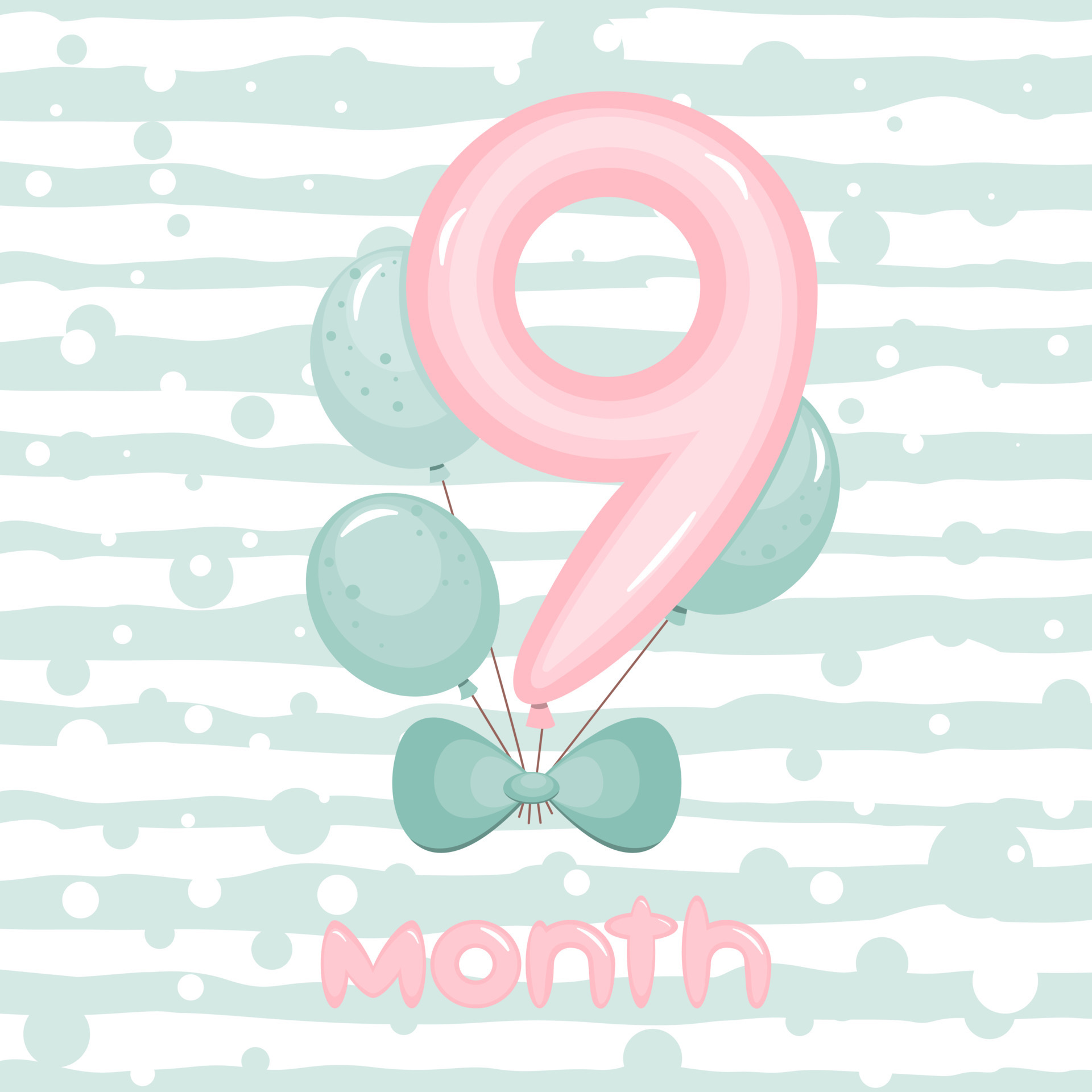 9 Month Birthday Party Invitation With Balloons Greeting Card Template Vector Illustration 6631052 Vector Art At Vecteezy